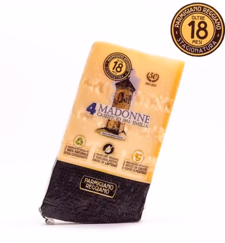 Upptäck den rika och komplexa smaken hos Parmigiano Reggiano 18 månader, lagrad i minst ett och ett halvt år för att utveckla en fylligare och mer aromatisk karaktär. Denna ost har en fastare konsistens, tydlig kristallisering och en djupare, nötig smak – perfekt för ostälskare som vill ha lite mer intensitet.